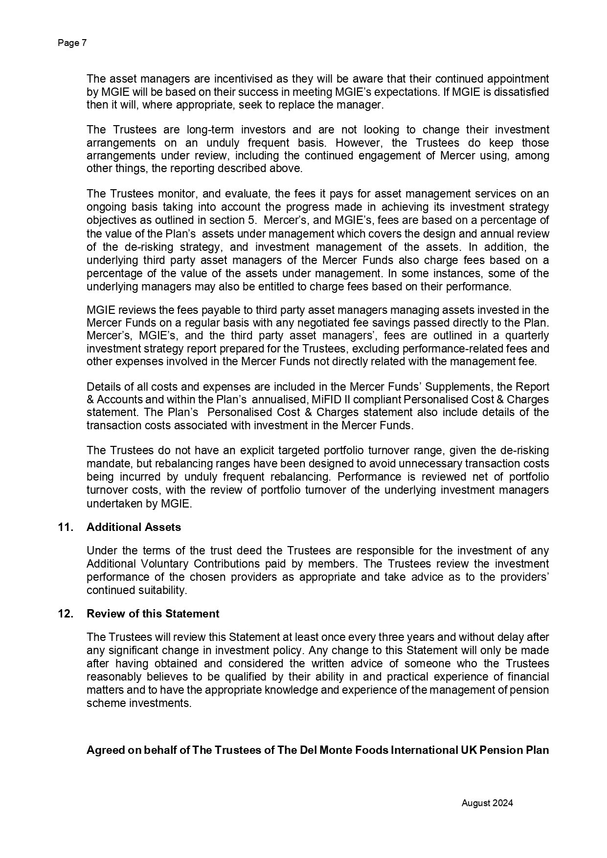 DMFI UK Pension Plan – Statement of Investment Principles